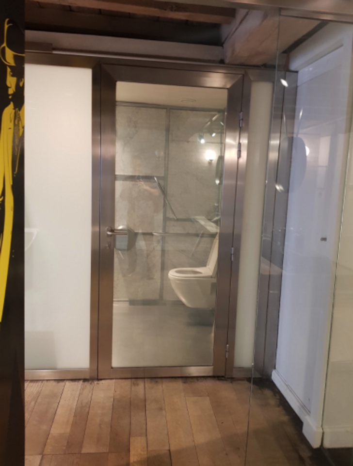 Этот туалет в одном из ресторанов Бельгии буквально сводит с ума. Здесь прозрачная стеклянная дверь. Когда вы внутри закрываетесь, она становится непроницаемой
