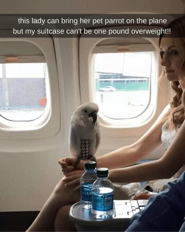 7. «Этой дамочке, значит, можно лететь с попугаем в салоне, но мой чемодан, видите ли, не может быть на полкило тяжелее»