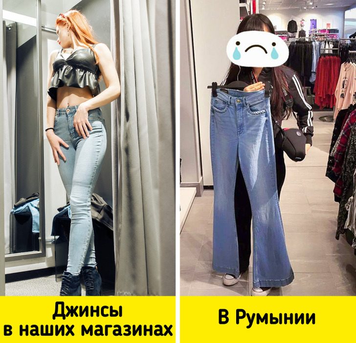 Джинсы, которые продаются в румынских торговых центрах, очень длинные. Должно быть, рост местных жителей выше среднего
