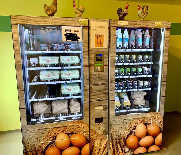 В Германии есть автоматы с фермерскими продуктами, в них можно приобрести свежие яйца, картофель, молоко, джем, мясо