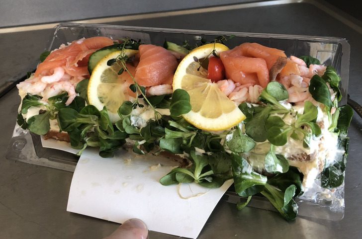Бутерторт — это несколько слоев хлеба, щедро сдобренных креветочным майонезом, с какими-нибудь морепродуктами и овощами сверху