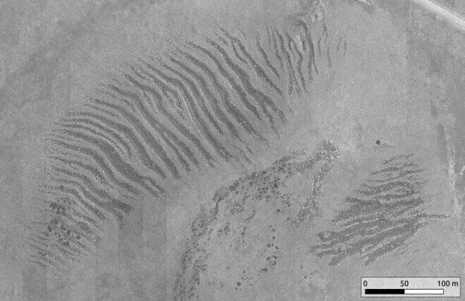 С высоты это действительно выглядит как тигровые полоскиУченые почти сразу отбросили идею того, что это было сделано человеком. И после поиска аналогии они наконец пришли к выводу, что во всем виноват ледник. Подобным образом он проходился и по приполярным территориям, сначала уничтожая огромные скалы в такого же рода «щебень» помельче, а затем прокладывал ими эти полосы.
