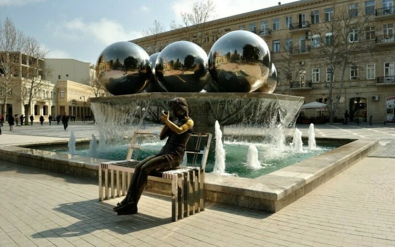 На этой площади располагается сразу несколько интересных фонтанов. Этот, например, украшен огромными шарами.