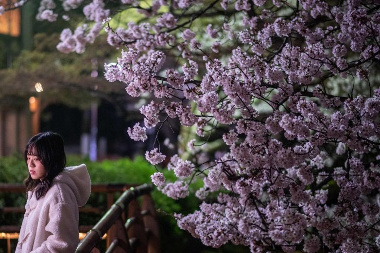 В Синдзюку Ген в центре Токио многие люди, включая семьи, устроили пикник под деревьями. Популярная зона наблюдения за цветением Накамегуро была полна людей, прогуливающихся вдоль реки, обсаженной цветущими вишневыми деревьями.