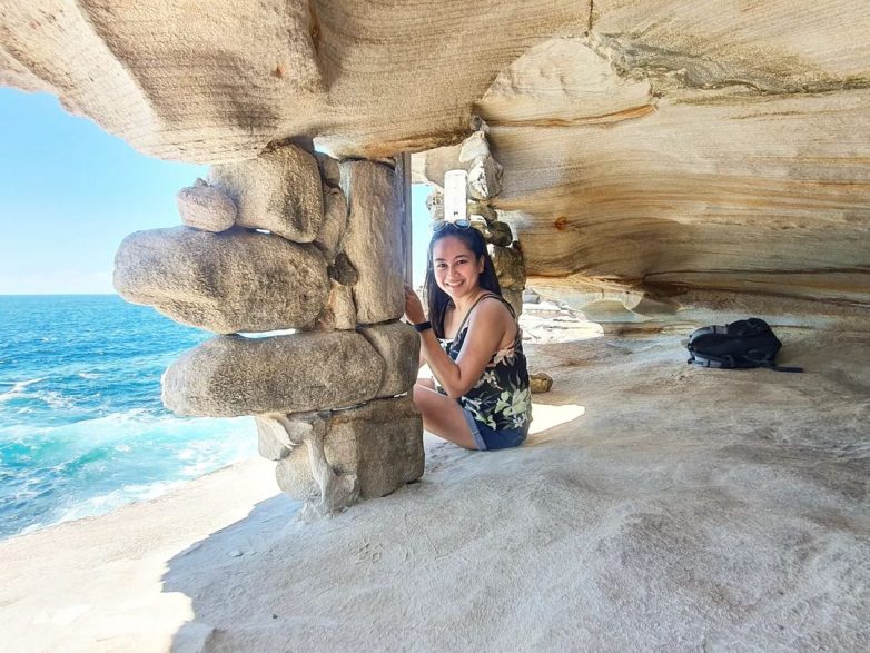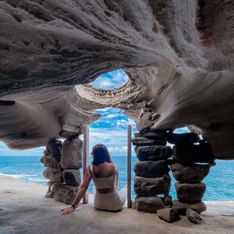 Но пещеру довольно трудно найти, так как она расположена в стороне от проторенной дороги в конце Кейп-Соландер-драйв через тропу Кейп-Бейли в национальном парке Камай Ботани-Бей.