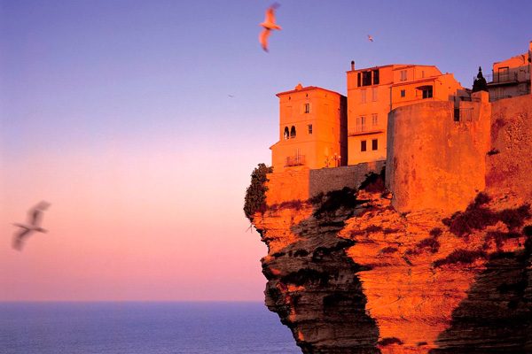 На отвесной известняковой скале живописного острова Корсика расположился самый большой южный город Бонифачо. Средневековые древние жилища местных жителей нависают почти над морем.