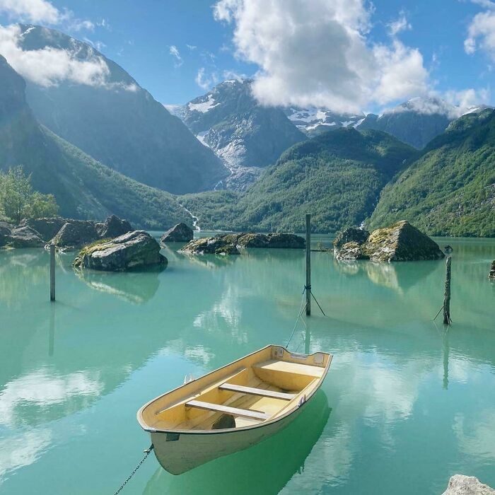 13. «Сделал это фото в четверг, путешествуя по своей стране. Маурангер, Норвегия. Голубовато-зеленая вода поступает из ледника»
