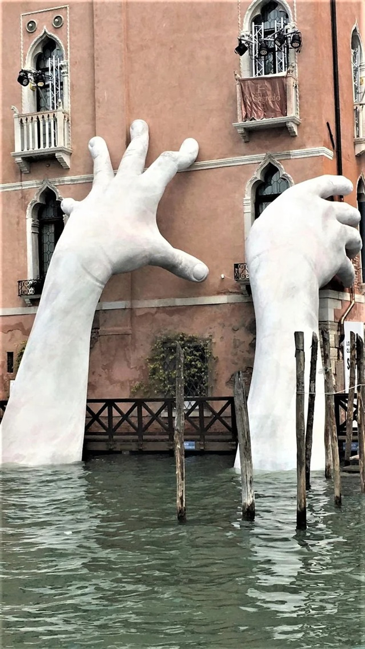 Скульптура Лоренцо Куинна, которая должна привлечь внимание к проблеме затопления Венеции