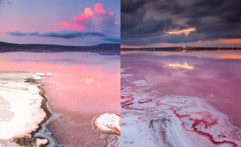 Это озеро, кажется, не похоже на все остальные озера на планете, но только не в теплое время года. Жара окрашивает соленое озеро в Крыму в цвет фламинго, и оно становится невероятно похожим на озеро Хиллер, в Австралии. Из-за чего такой необычный цвет воды? Из-за водорослей и рачков, обитающих в Кояшском озере. И чем знойнее лето, тем насыщеннее цвет озера.