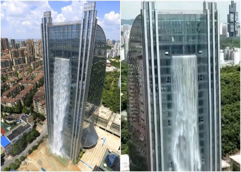 Китай в очередной раз доказал, что он впереди планеты всей. Несмотря на то, что в стране с живописной природой и горным ландшафтом имеется масса прекрасных водопадов, созданных матушкой-природой, промышленная группа Ludi Industry Group решила сделать свой в клад в развитие туристической индустрии города Гуйян. Отдавая дань уважения природной красоте провинции Гуйчжоу, они интегрировали искусственный водопад в новый небоскреб, высота которого достигает 121 м.