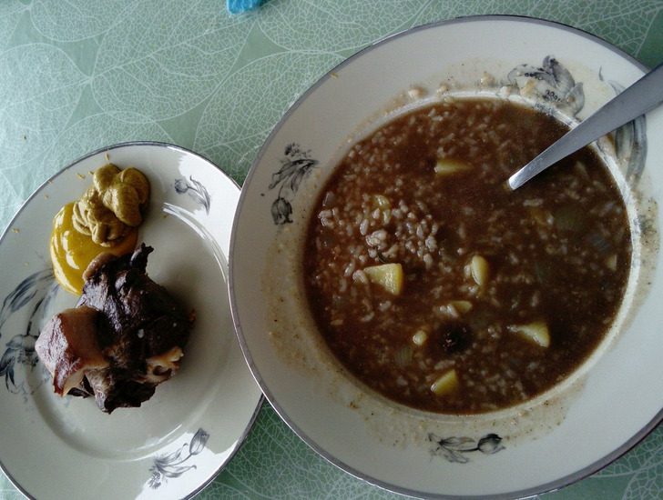 В суаасат идут лук и картофель, их приправляют привычными нам солью, черным перцем и лавровым листом. Для густоты используют рис или замоченный на ночь ячмень.