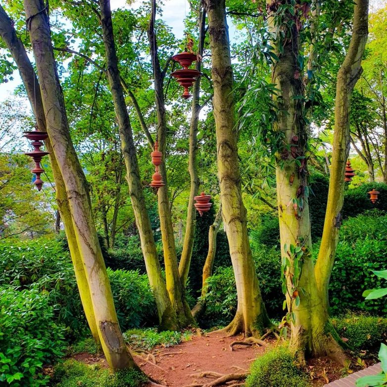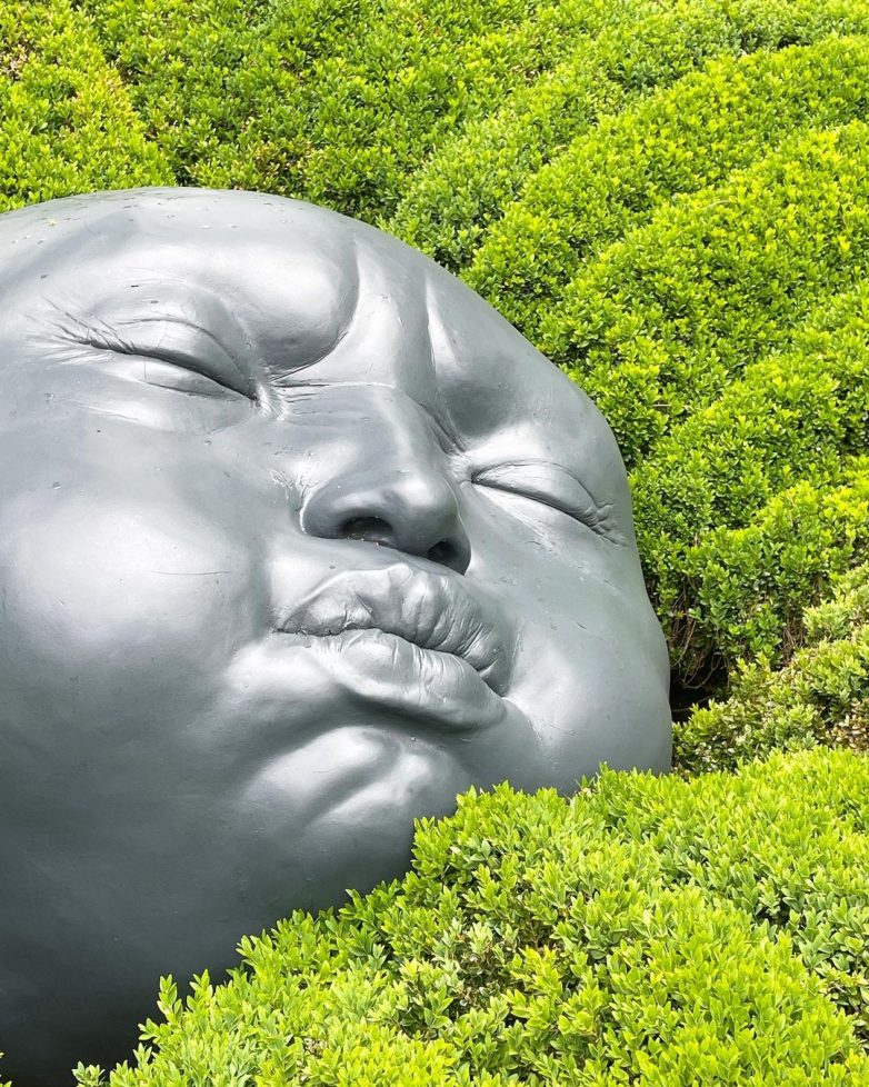 Прогулки по этому комплексу затягивают. Помимо каучуковых голов, можно увидеть инсталляцию Сергея Катрана «Пока не исчезнет слово». Среди деревьев висят объекты, которые повторяют форму звуковой волны, возникающей, когда произносят слово «искусство» на разных языках мира.