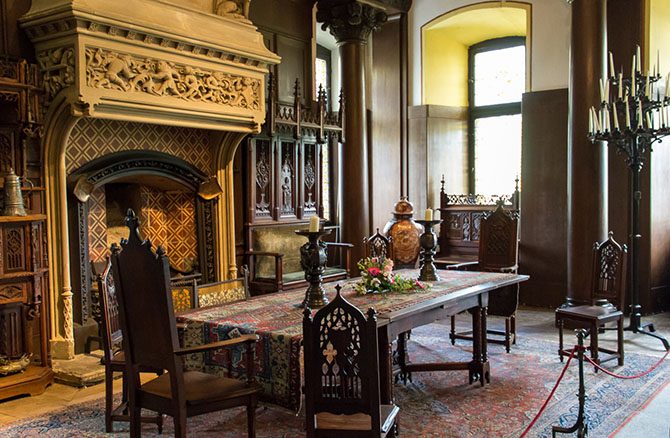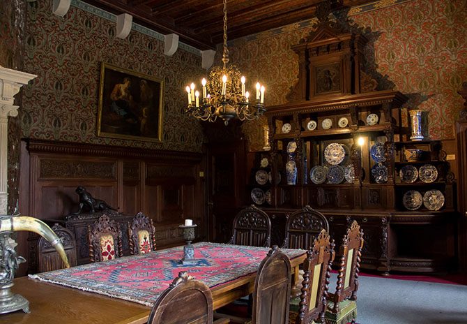 Внутри замок прекрасен. Основная обстановка – 19 века, но много отдельных, более старинных предметов, особенно оружия. Экскурсии проводятся на разных языках, устно на немецком, английском, французском, голландском; на русском, говорят, есть аудиогид, если идти группой.