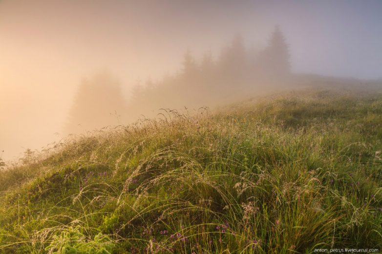 Представьте себе — встаешь с утра, в пол четвертого и пытаешься туманным взглядом в окно понять какая будет погода. А за окном была сплошная облачность и ветерок. Там нас ждали невероятные туманы и коровки, звенящие колокольчиками во мгле…