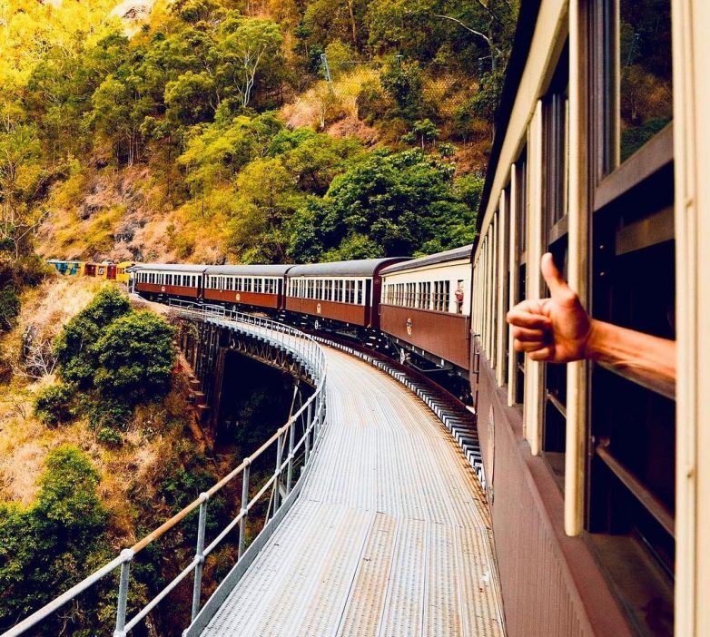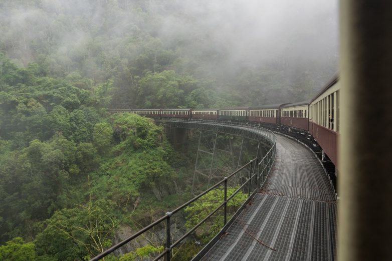 Живописная железная дорога Куранда проходит через тропический лес Квинсленда, внесенный в список всемирного наследия ЮНЕСКО, от одноименного исторического города до самого Кэрнса.