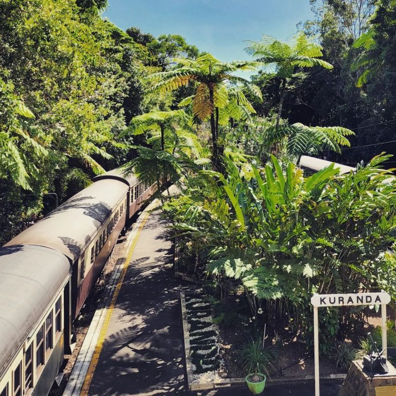 Куранда, получившая название «деревня в тропическом лесу», является конечной остановкой, где пассажиры могут сойти на платформу, заросшую растениями, и перекусить в причудливых чайных.