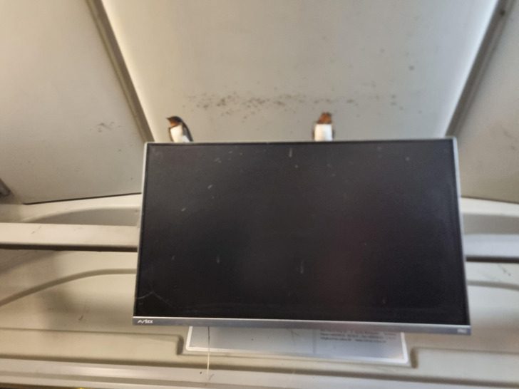 Птицы свили гнездо за монитором в автобусе. Теперь они здесь живут