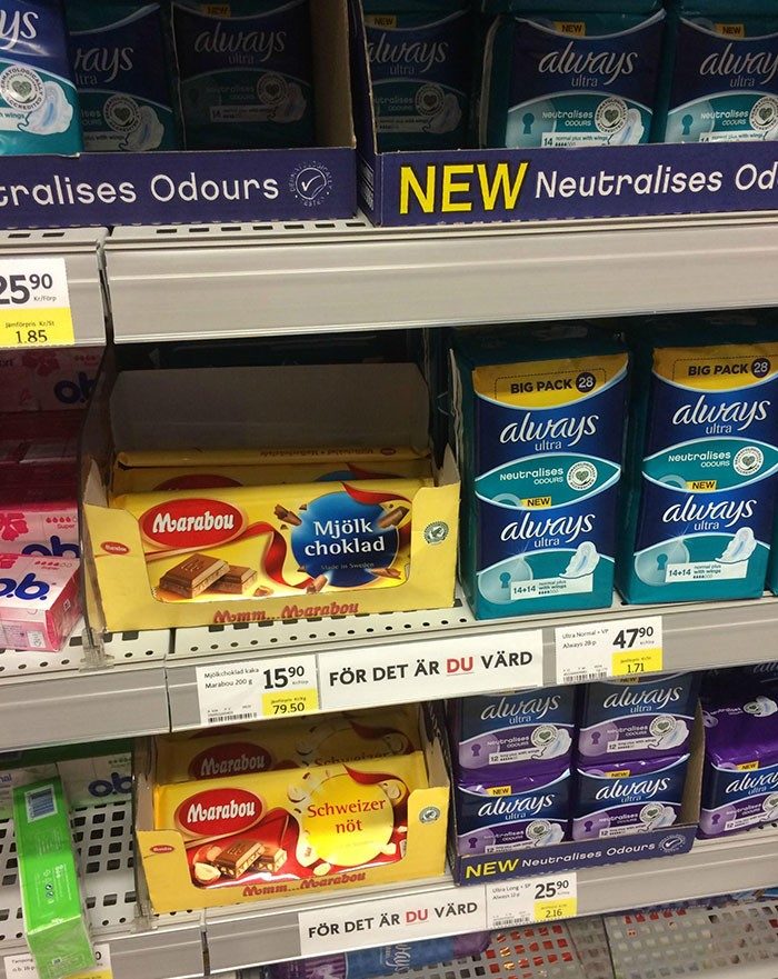10. В шведских магазинах рядом с прокладками продают шоколад