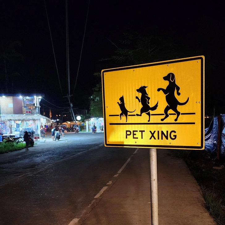 Комичный дорожный знак на Сиаргао (Филиппины) обозначающий, что дорогу могут переходить животные