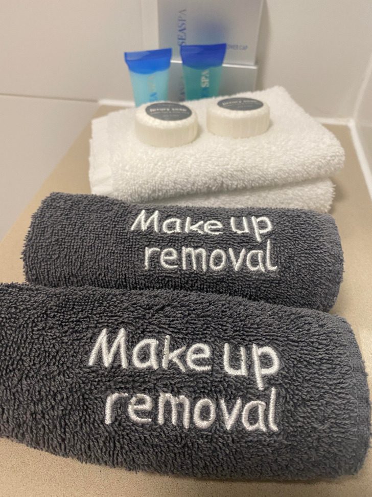 «А в нашем отеле рядом с обычными полотенцами для лица кладут вот такие специальные полотенца для снятия макияжа»