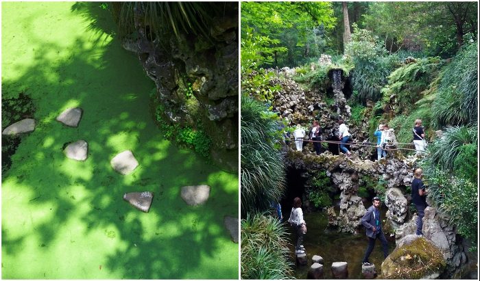 Иногда камни показываются над водой, и тогда смело можно начинать шагать только с левой ноги (Quinta da Regaleira, Синтра)