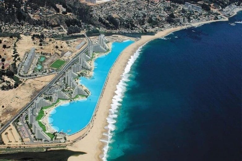 В местечке Альгарробо можно увидеть совсем уж удивительную картину — там построили самый большой мир и очень дорогой бассейн Сан-Альфонсо-дель-Мар длиной в километр. Он находится в 30 метрах от отличного натурального песчаного пляжа на берегу океана и тянется параллельно ему. В бассейне плавают люди, а на пляже пустота. Такая же картина севернее — в Мексике, в Перу, на юге США. В жарком Лос-Анджелесе на пляжах купаются единицы. Ожидаемо, что ближе к границе с Канадой на берегу становится уже холодно.