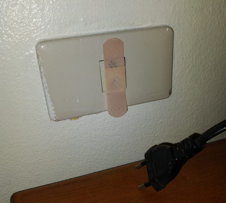 7. Так можно быстро обезопасить номер в отеле для ребенка, заклеив медицинским лейкопластырем розетки