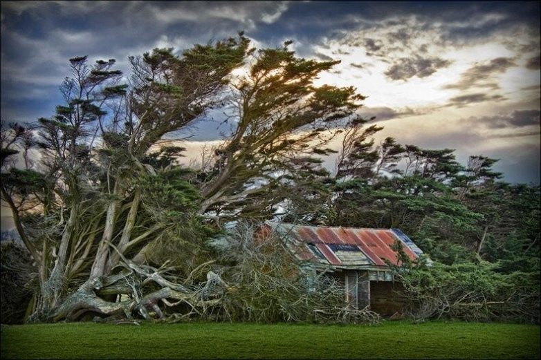Мыс Слоуп Поинт – это самая южная точка Южного острова Новой Зеландии. Этот регион постоянно обдувают свирепые и холодные юго-западные ветра со стороны Антарктиды. Ветер здесь столь мощный и порывистый, что деревья изогнуты в направлении ветра. В основном здесь разводят овец, и, кроме небольшого количества этих парнокопытных, в этой части острова нет ни людей, ни других животных. Есть несколько заброшенных лачуг, построенных под защитой деревьев, но даже они заброшены.