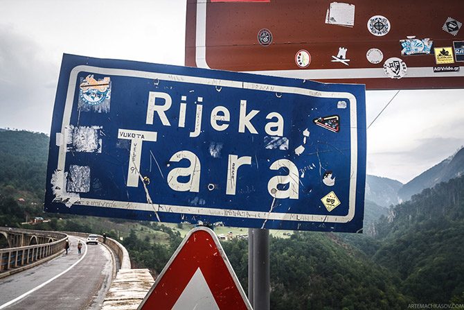 Высота моста — 172 метра, поэтому малахитовый поток Тары видно хорошо…