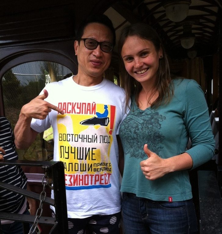 «Встретился мне мужчина в местном поезде, идущем в Мельбурн. Он наконец-то узнал, что гласят эти каракули на его футболке»
