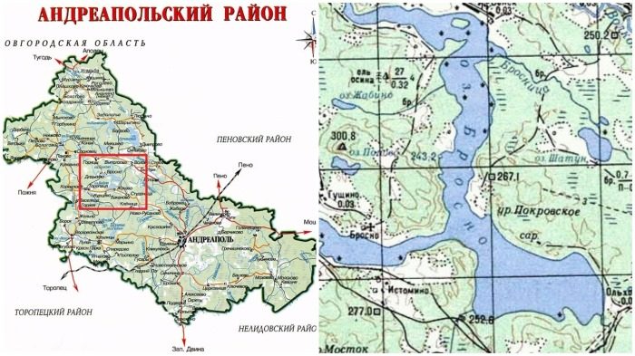Находится озеро недалеко от Андреаполя, города в Тверской области в глухом лесу. Раньше вблизи озера был оживленные деревни, но постепенно, как и в других российских регионах, они стали малонаселенными.