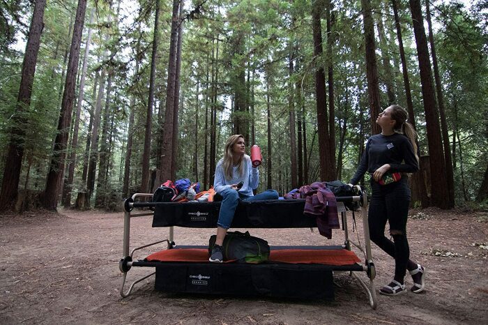 Очень удобное решение: Disc-O-Bed позволяет комфортно отдыхать на природе, не касаясь земли и разместить в одной палатке больше людей за счет двухъярусной конструкции. Внешне кажется, что система громоздкая, но в сложенном состоянии она умещается в небольшую сумку.