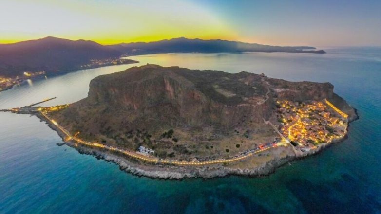 Этот необычный греческий город, построенный на острове и сохранившийся с раннего средневековья, называют «скрытый город» или даже «тайный город на скале». Но есть и другие поводы поговорить о нём – например, если вы хотите узнать, куда делось население древней Спарты, или же изучаете историю виноделия, а текущая тема у вас – знаменитая Мальвазия.