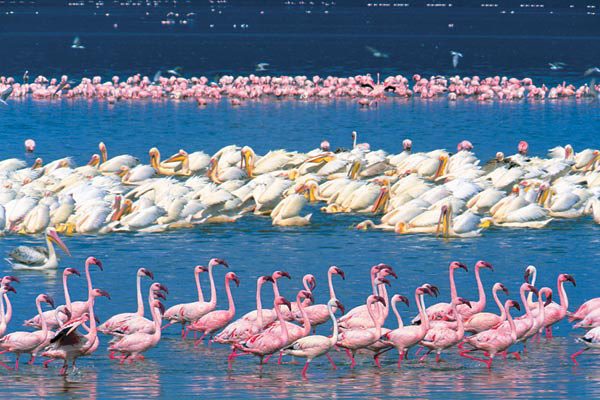 Однако притягивает к себе туристов Накуру вовсе не своими размерами. Именно здесь обитает большое количество розовых фламинго. Случается так, что одновременно на озере можно увидеть до полутора миллионов этих птиц. Захватывает дух зрелище, когда они взлетают ввысь.