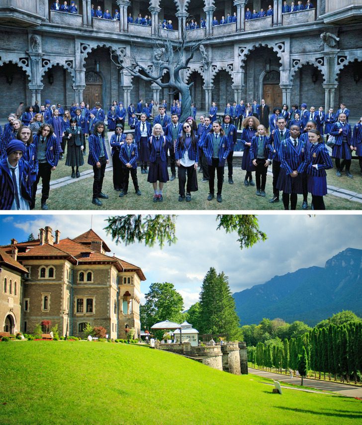 Конечно, для пущей мрачности замок был немного «улучшен» с помощью компьютерной графики — академия для юных бунтарей не могла обойтись без готических атрибутов вроде кривого дерева во внутреннем дворе. Но вживую замок Кантакузино ничуть не менее прекрасен.