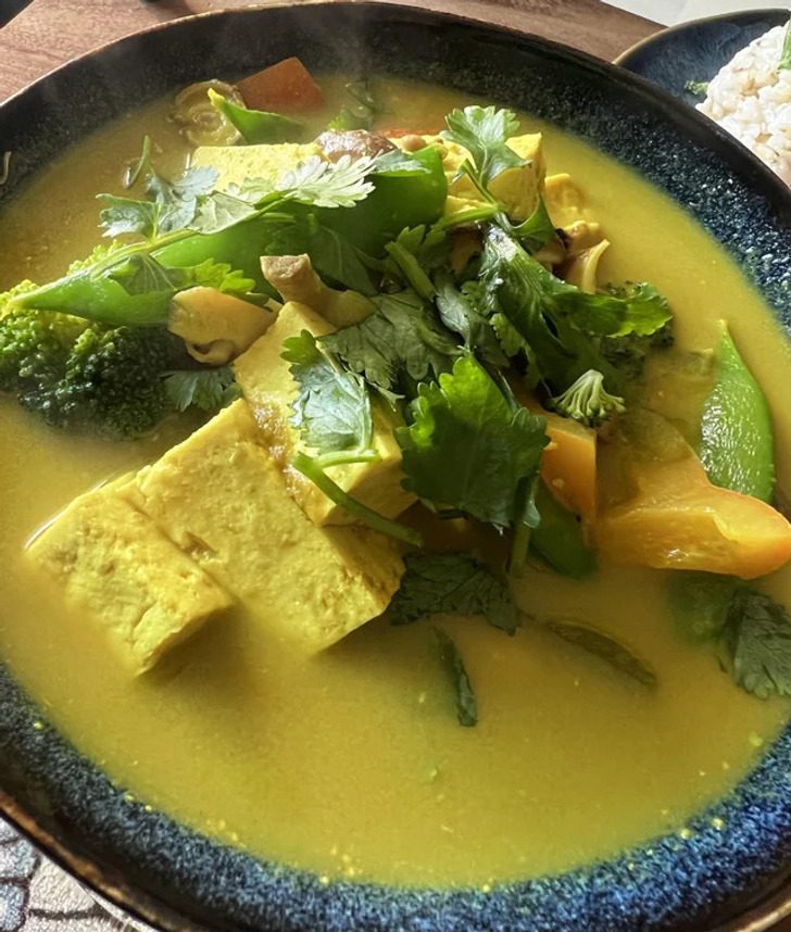 Тайский зеленый карри — блюдо на основе ароматного и острого зеленого перца чили. Другим важным ингредиентом является кокосовое молоко, которое идеально уравновешивает остроту зеленого перца чили, но при этом придает сливочный вкус и легкую сладость.