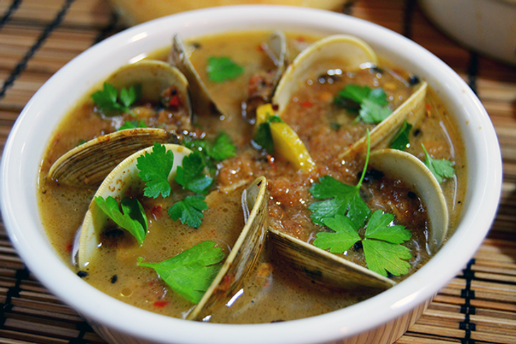 Моя мама португалка, она готовит много португальских блюд. Для Амейжоа а Бульяу Пату вам обязательно понадобится хлеб, чтобы макать в соус. Я уверен, вам не захочется оставлять на тарелке ни капли. © Kevin Frye