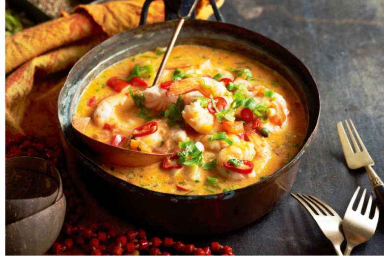 Это рагу из морепродуктов (креветок или рыбы) тушат в традиционных глиняных горшочках вместе с овощами и свежей зеленью и подают к рису. Название блюда имеет африканское происхождение.