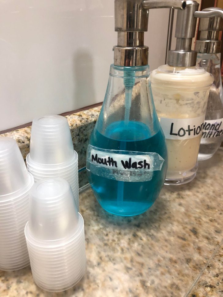 Надписи на дозаторах: «Гель для душа», «Кондиционер», «Шампунь».