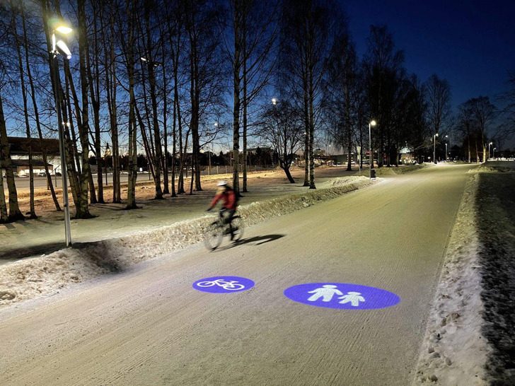 В Финляндии знаки пешеходных и велодорожек — световые проекции
