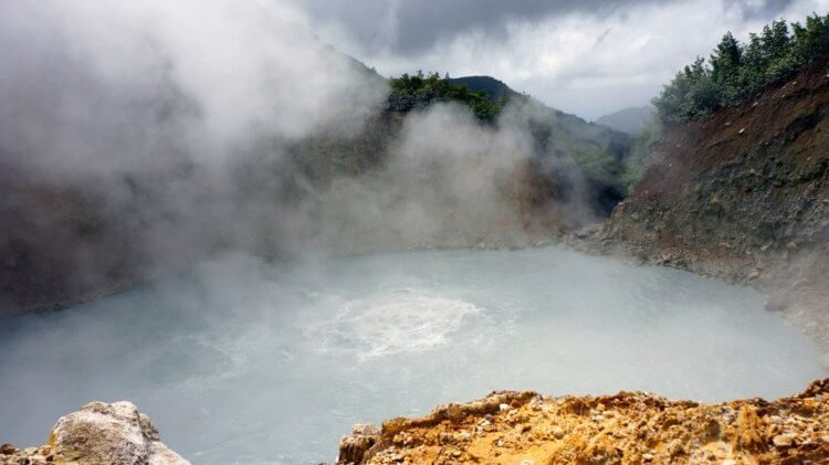 На территории Доминиканы есть национальный парк Морн-Труа-Питон, а в нем — кипящее озеро Бойлинг. Как можно понять по названию, вода в этом озере очень горячая. В засушливые периоды температура воды в ней достигает 92 градусов Цельсия. Она остывает до 10 градусов только в дождливые периоды, и это длится недолго. В этом озере происходило много несчастных случаев, в результате которых люди получали серьезные ожоги или вовсе умирали. Из-за этого, даже в периоды дождей, купаться в этих водах строго запрещено. Вода в озере сильно нагревается из-за расположения озера рядом с вулканом.