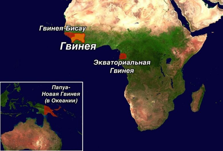 Гвинея, Гвинея-Бисау, Экваториальная Гвинея и Папуа — Новая Гвинея: более 500 лет эти 4 не похожие друг на друга страны носят практически одинаковые названия. При этом одна из них не связана с остальными ни географически, ни культурно.