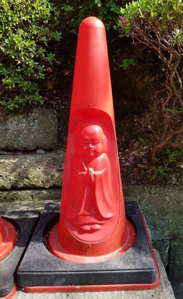 Дорожный конус с изображением Будды, который можно найти в Японии