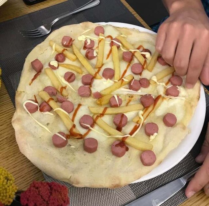 Это пицца паперино (или «Дональд Дак»). Чаще всего ее заказывают дети. В ней недорогие ингредиенты, и ребятишкам нравится. © Marcus_Aurelius753