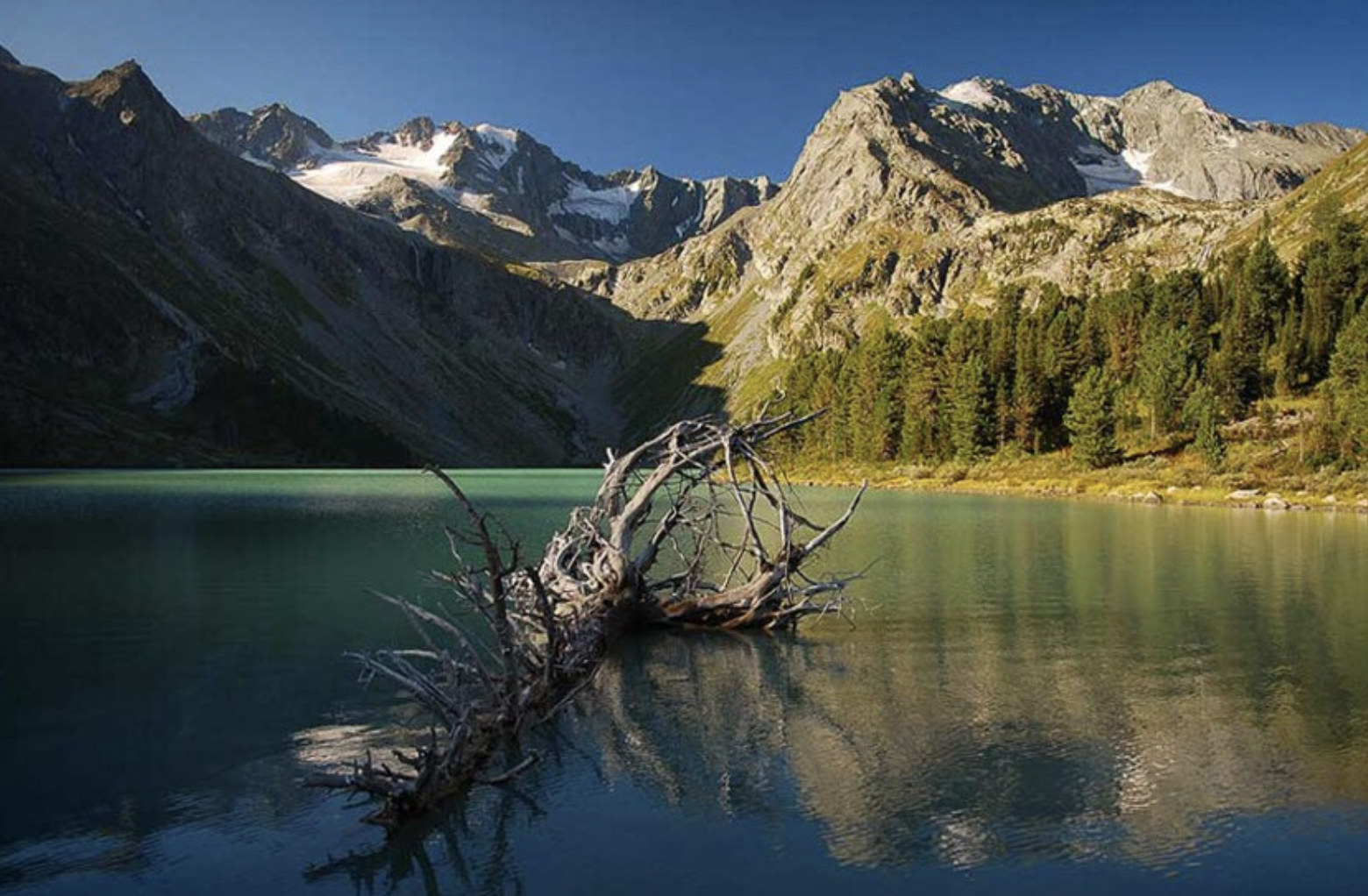 АлтайЭта гора — высочайшая точка горного Алтая. Здесь расположено множество ледников, из-за чего подняться на гору могут рискнуть только самые опытные альпинисты.