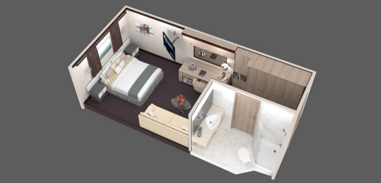 Каждые 27 месяцев судно будет совершать неспешное кругосветное путешествие, после чего проходить техническое обслуживание и отправляться в следующее. Все желающие при этом смогут снять каюту на долгий срок. Стоимость отличается в зависимости от площади комнаты. За самую маленькую во внутренней части корабля (площадью 21 «квадрат» без вида на океан) придется отдать $8 тысяч в месяц на двоих. Есть варианты и по $35 тысяч с собственной террасой. Кроме этого, оператор требует депозит, а минимальный срок аренды составляет полгода. При заключении длительного договора предполагается скидка. Например, при 37-месячной аренде стоимость комнаты уменьшится на 40%.