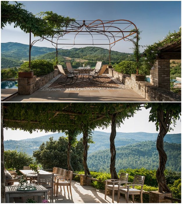 Возле каждой резиденции обустроены террасы с зоной отдыха, откуда открывается восхитительный вид на живописные окрестности (Castello Di Reschio, Италия).