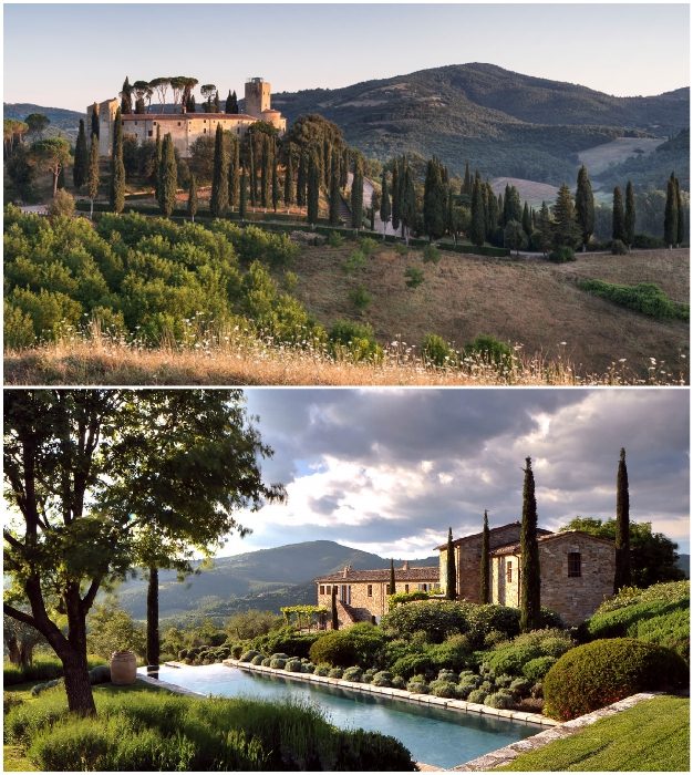Возле каждой резиденции созданы панорамные бассейны (Castello Di Reschio, Италия).