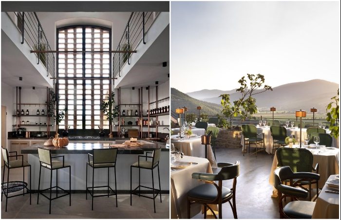 Открытая кухня, ресторан и обеденный зал на террасе порадуют гостей отеля (Castello Di Reschio Hotel, Италия).