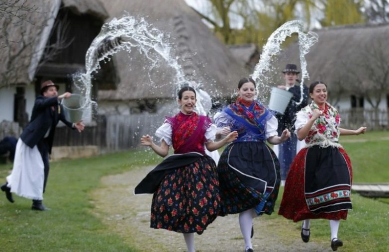 В Польше есть такая традиция на Пасху: группы парней бродят по сельской местности, обливая девушек водой и побивая их (мягко) палками. Затем девушки должны поблагодарить их за это. П — патриархат!
